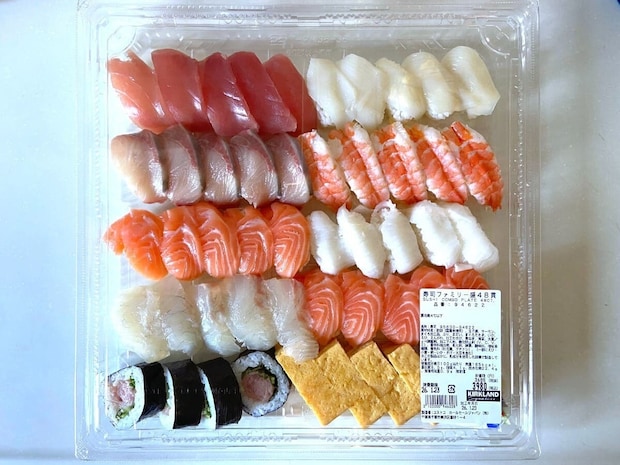 コストコに行くと、カートに入れている人をよく見かける大きなお寿司のパック。