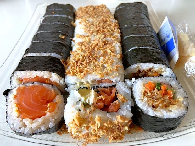 サーモンポキロール、フィラデルフィアロール、焼肉ロールの3種が1本ずつ。