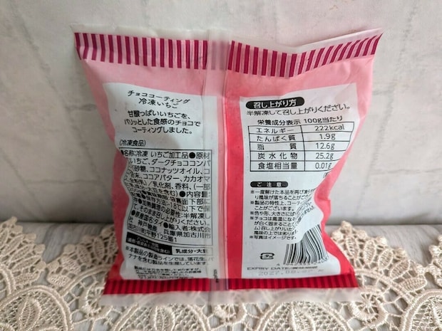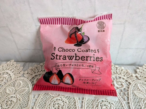 3つ目はパッケージが鮮やかな「チョココーティング冷凍いちご」。