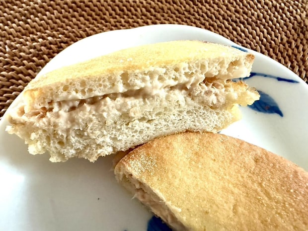 タリーズではバターオイルを使用して焼き上げたものに、ツナと玉ねぎなどを合わせたものをマヨネーズで和えたツナフィリングとチーズソースをサンドしています。