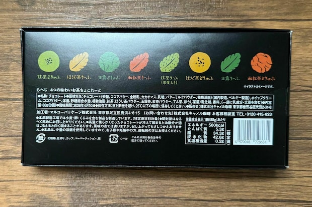 上品な和風パッケージが特徴的な「4つの味わいお茶ちょこれーと」。