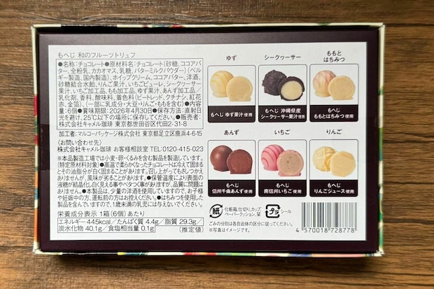 国産フルーツにこだわった【もへじ】のトリュフチョコレートのアソートボックスです。