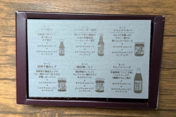 爽やかな沖縄県産シークヮーサー果汁やゆず果汁のほか、南信州いちご、信州千曲あんず、ももとはちみつ、りんごジュースといった6種の味わいが楽しめます。