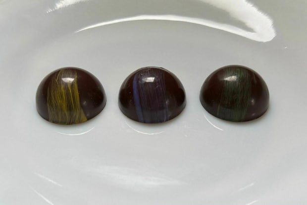 半円のチョコレートにまばらに線を引いたようなお洒落なカラーリングが特徴です。