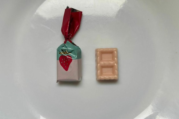 あまおう苺のパウダーをマイルドなホワイトチョコレートと合わせた一品。