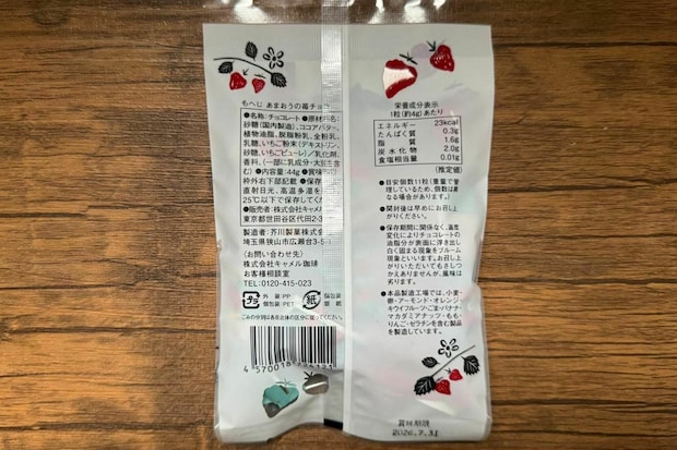 チョコレートは一口サイズ。酸味は控えめで、優しい苺の甘味が楽しめる一品です。