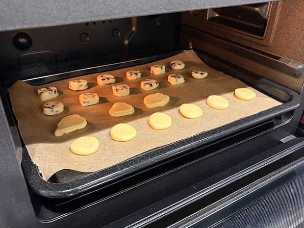 冷蔵庫で冷やしたクッキー生地を適度な厚みに伸ばし、オーブンで焼き上げていきます。180℃に予熱したオーブンで13~15分焼き上げましょう!