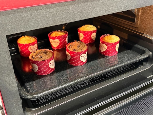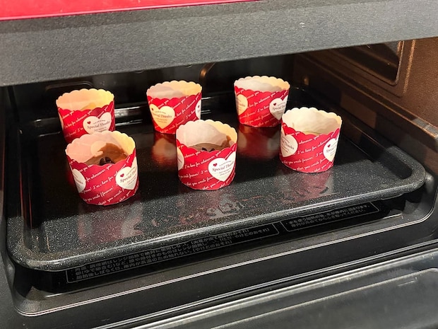 生地の流し込みが完了したら、オーブンでマフィンを焼き上げていきます。