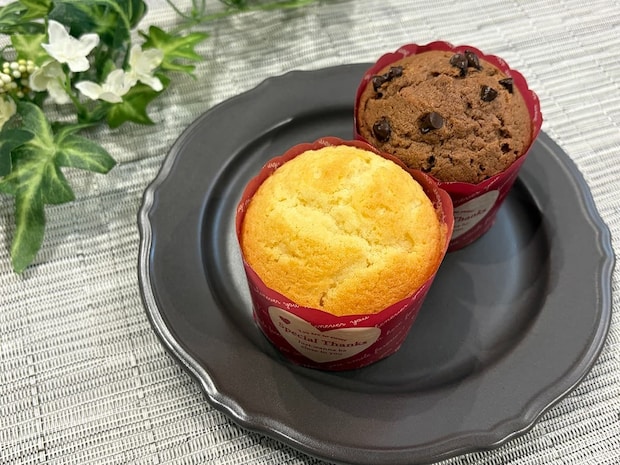 完成したマフィンを並べてみました。ふっくら焼き上がっており、カップの形も特に崩れておらず丈夫です!