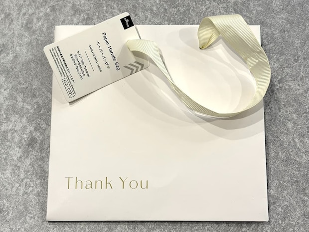 洗練されたホワイトのカラーで、年齢を問わず活用できるのが評価できるポイント。ゴールドの”Thank You”の文字が、シンプルなデザインの中に華やかさを添えるアイテムです!