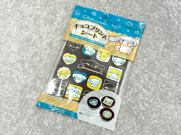 シナモロールのキャラクターが描かれた可愛いチョコプリントシール。特別なテクニック要らずで、キャラクターをチョコレートに転写できる便利アイテムです!