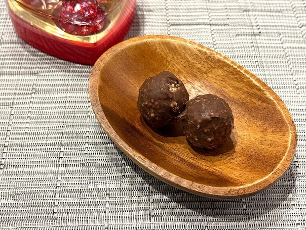 ケースには大粒のチョコレートが3個入っています。チョコレートの中はストロベリーに加えクランチが散りばめられており、こだわりさえ感じるお菓子です!