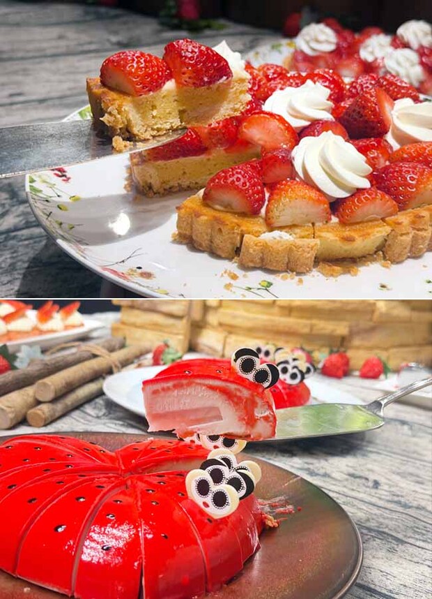 (写真上)「いちごタルト」/(写真下)「ルビーチョコレートいちごムース」