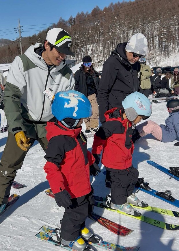 初めて連れて行った年は、ブーツを履くだけでもひと苦労で、板をつければすぐに転び、泣いてしまうこともありました。