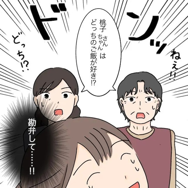 しかし、今日はその作戦が通用しませんでした。なんと義母と義祖母がそろって私のほうを向き、「桃子さんは、どっちのご飯が好き!?」と詰め寄ってきたのです。・・・もう勘弁して。