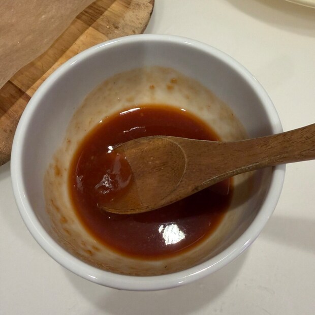 ※タレは焼肉のタレにケチャップはお好みの量で、砂糖は少し。全部混ぜて電子レンジで20〜30秒ほどチンしてください♪