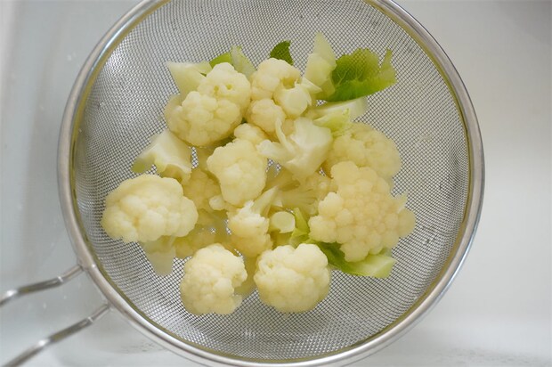 カリフラワーは3分ほど、コリコリとした食感が残る程度に茹でました。