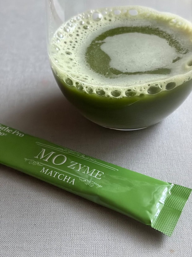 続いては、インナービューティのプロフェッショナルブランド「エステプロ・ラボ」から登場したMO ZIME。微細藻類研究を長年行うユーグレナ社との共同開発によって誕生したアイテムで、59種の栄養素を含む石垣島産ユーグレナをはじめとする3種の藻類に、82種の乳酸菌を配合した発酵原液をブレンド。さらに、京都の老舗「堀田勝太郎商店」の抹茶を加え、藻と菌の力を掛け合わせた本格インナーケア設計。味わいは、抹茶本来のほろ苦さが際立つ大人仕様。飲み続けることで、お通じの変化だけでなく、全身が軽く整うようなスッキリ感を実感できます。