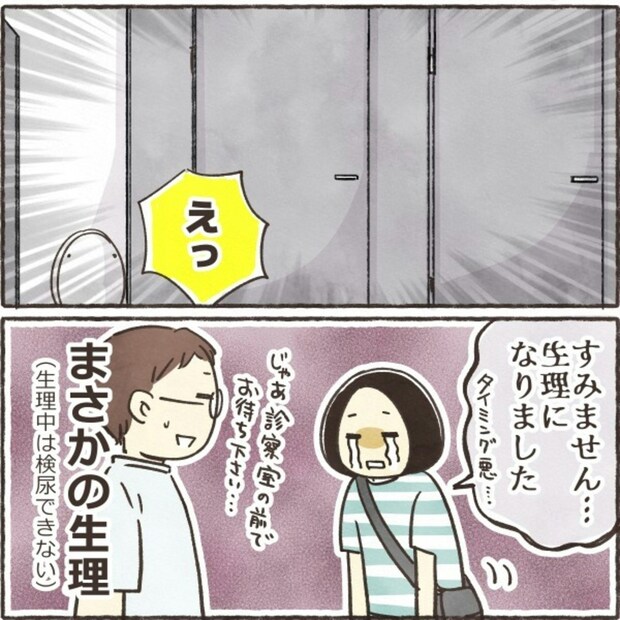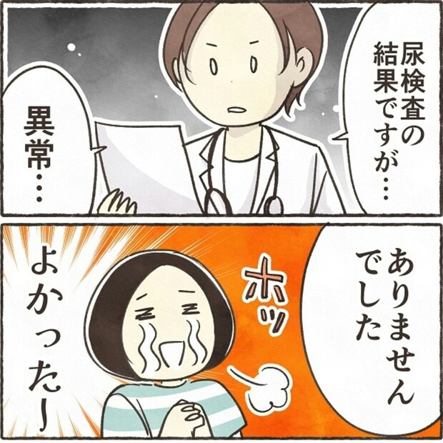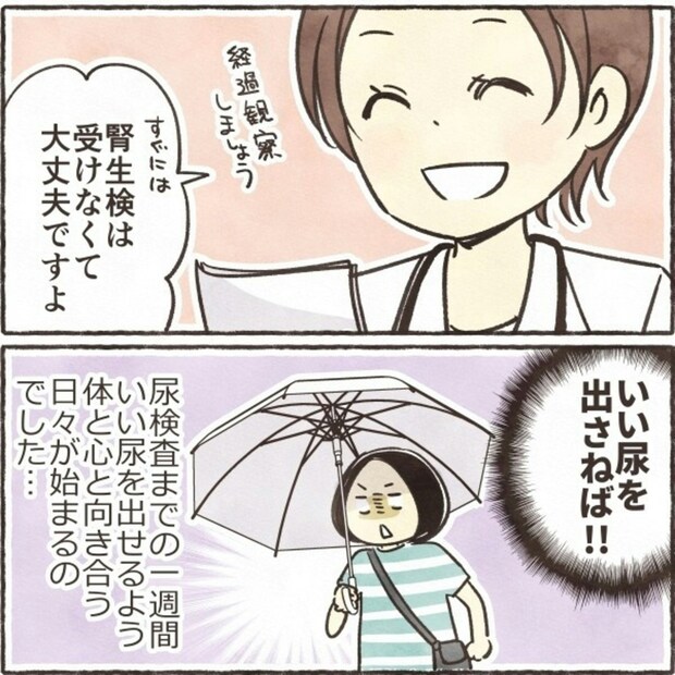 尿検査で異常がなければ、すぐには腎生検を受けなくても大丈夫という先生の言葉に、きなこさんは良い尿を出すことに全力を注ぐ決意をします。尿検査までの1週間、良い尿を出すために心と体と真剣に向き合う日々が始まります。