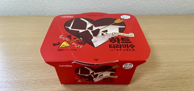 「セブン」でみつけたのは、赤を基調とした可愛らしいデザインの「ハートティラミスアイス」。韓国アイスらしいアイスコーナーの中でもひときわ目を引くデザインです。