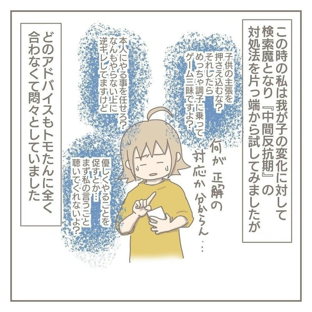 長男、トモたんの中間反抗期がひどく、手を焼き始めたヨカさん。いろいろな対処法を調べますが、改善はしません。夫婦で育児を分担したいと思っていましたが、夫はとても自由奔放で、叶いそうにありません…。