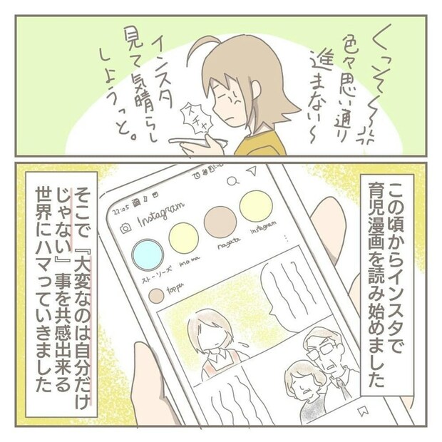 もっと夫と協力し合って、育児に向き合いたかったヨカさん。本人に伝えることはできません…。このころのヨカさんは、SNSで、同じように大変な思いをする人に共感をすることで、ストレスを発散していました。