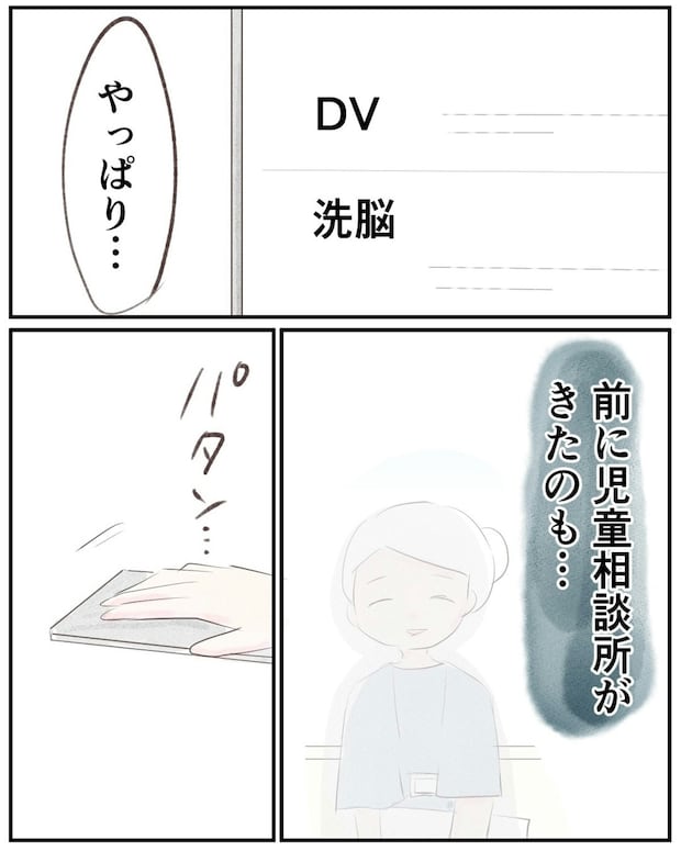 検索結果の中に「洗脳」「DV」という文字を見つけて「やっぱり」と思うゆうさん。もう夫は結婚前の優しい人に戻らないとわかり、ゆうさんは泣いてしまいます。