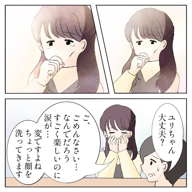 そんな俺たちのやりとりを見て涙ぐむユリ姉。それを見て驚いた母さんが、「ユリちゃん大丈夫?」と声をかけると、「ご、ごめんなさい、なんでだろう。すごく楽しいのに涙が・・変ですよね、ちょっと顔を洗ってきます」そう言ってユリ姉が立ち上がりました。