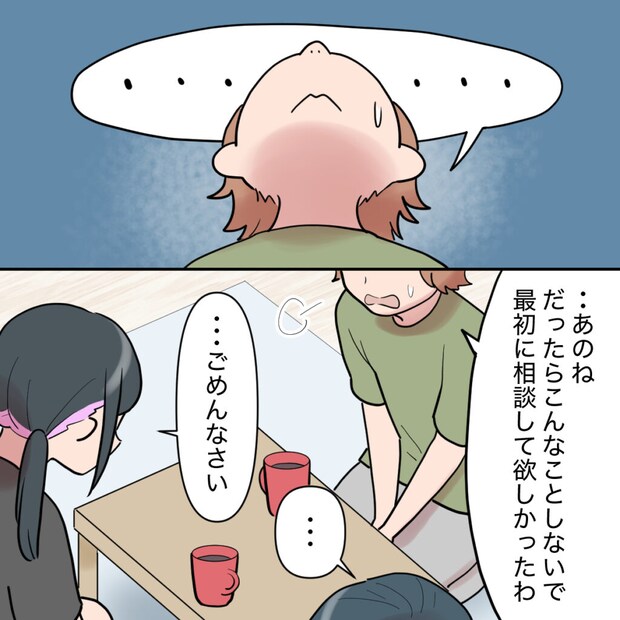 エリカちゃんがうちに泊まっていた理由を聞いた私は、お泊まり禁止のルールを貫くべきか悩んできました。「・・あのね、だったらこんなことしないで最初に相談して欲しかったわ」と溜息まじりに言うと、エリカちゃんは「・・ごめんなさい」と素直に謝ってくれました。