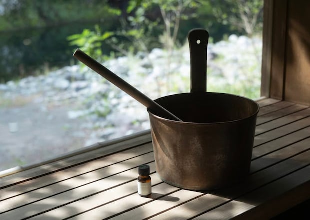 そうそう、こういう桶に入ってるいい香りの液体をアツアツのサウナの石にかけてシャーって蒸気があがってね、イイ香りに包まれながらぶわ~っと汗がかける、それがロウリュ。本当にTHREEの香りでできるの⁉