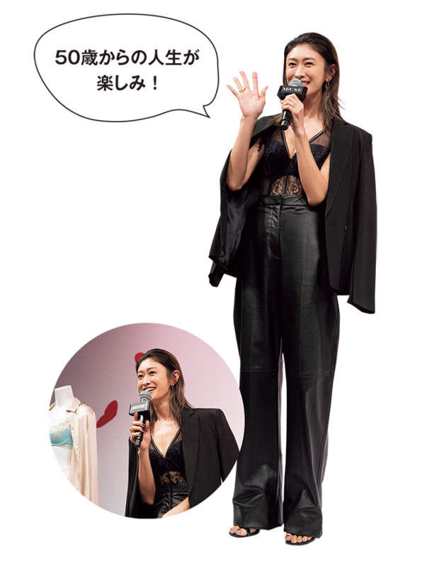 着け心地のよさと素敵なレース使いに惚れて、インティミッシミのランジェリーを愛用しているという山田優さんのトークショーからスタート。「忙しくても自分と向き合う時間を作ることは大切。それが自分自身を愛することにもつながりますよ!」