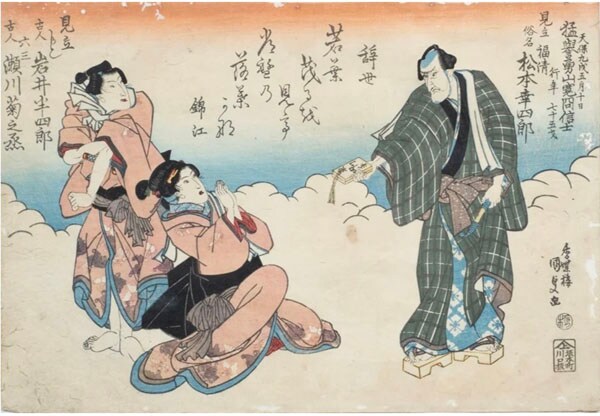 歌川国貞《見立福清 松本幸四郎 見立かしく 岩井半四郎 見立六三 瀬川菊之丞》天保9年(1838)