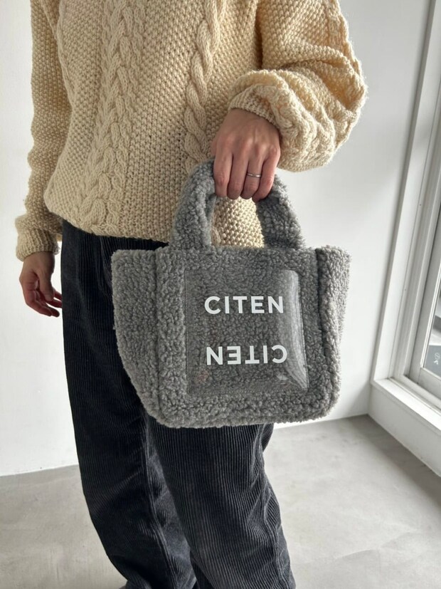 増刊号の付録は、クリアポケット付きのもふもふボアバッグ。ほっこりしがちなボアバッグですが、異素材の組み合わせでCITENらしいヒネりのきいた名作が誕生しました。そのままでももちろんかわいいですが、クリアポケットに小物を入れてアレンジをするのもオススメ。くすんだグレーがかわいくて、どんなコーディネートにもあわせやすいかと思います。