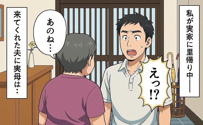 「あのね…」里帰り中の私と娘に会いに来てくれた夫→「え?」耳を疑った、母が玄関で告げたひと言とは