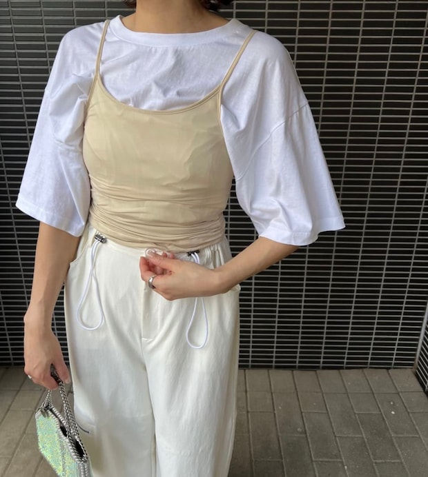 ビッグT×コンパクトキャミで作る表情たっぷりの重ね着スタイル
