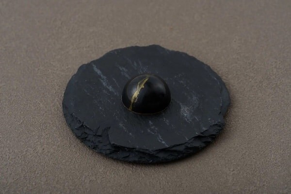 「礎(いしずえ)」は、ミルクチョコレートガナッシュに「TAKANOME」を閉じ込めた、最も酒の存在感を感じられる一粒。芳醇な香りと奥行きのあるコクが広がり、日本酒とチョコレート双方の余韻をじっくりと楽しめる。