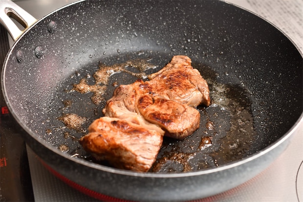 あとは普段通り、強火で表面を焼き、火加減を調整しながら仕上げれば完成です。