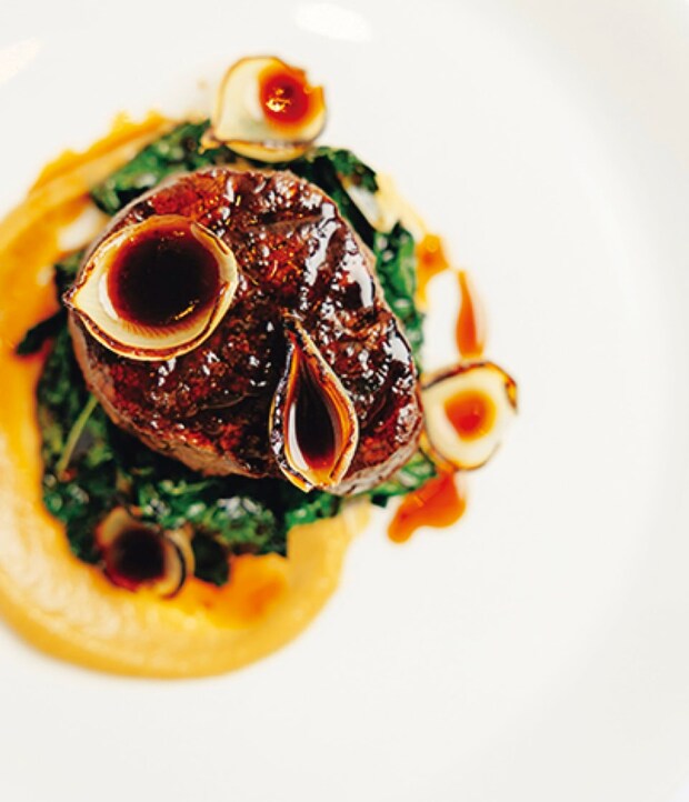「最後のディナーもニュージーランドの食をたっぷり堪能できて、大満足でした」(岩田さん)牧草牛の赤身ステーキ $54はぜひ注文したい逸品。デザートの種類が豊富なのも嬉しい。