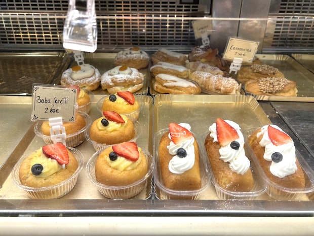 ナポリを訪れると、小さなババをシロップ漬けし、瓶詰したものがバールやパスティッツェリア(ケーキ屋さん)などに並んでいて、お土産に人気です。