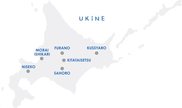 「UKiNE」の今後の構想として、四季を通して楽しめるマウンテンリゾート「UKiNE SAHORO(サホロ)」、花と丘、アートと美食が融合する「UKiNE FURANO(富良野)」、グローバルな感性を持つゲストが集う、国際的フォースプレイス「UKiNE NISEKO(ニセコ)」、手つかずの自然が残る山岳リゾート「UKiNE KITATAISETU(北大雪)」、都市近郊にありながら、自然との対話が叶う新たな隠れ家「UKiNE MORAI ISHIKARI(石狩モウライ)」を展開予定。