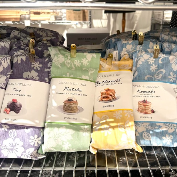 ハワイといえばパンケーキ! オーソドックスなパンケーキミックスは日本の店舗でも手に入りますが、ハワイの店舗では地元ならではのフレーバーが特別なパッケージで販売されています。フレーバーは右からKOMEKO、BUTTERMILK、MATCHA、TAROの4種類! ロイヤルハワイアンセンターとリッツカールトン レジデンス ワイキキ ビーチの限定アイテムです。