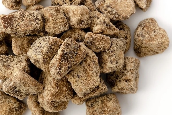 沖縄黒糖のブッターシュタンゲンに使用したのは、沖縄県・粟国島産の純黒糖。サトウキビの搾り汁のみを煮詰めて作られ、ミネラルを豊富に含みながら、えぐみや苦味が少ない滑らかな甘みが特長だ。黒糖の自然な旨みとバランスのよい味わいは、焼き菓子との相性も高く、素材としての可能性を最大限に引き出すとのことだ。