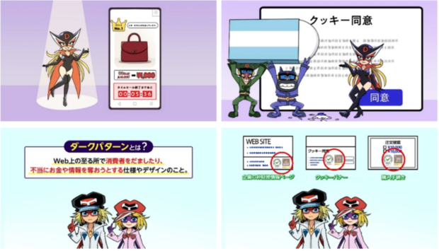 今回公開された「ダークパターン啓発動画」は、ダークパターンによる被害の理解促進と被害削減を目的に制作されたものです。動画では、長年親しまれてきたアニメ作品『ヤッターマン』のキャラクターであるヤッターマンとドロンジョを起用し、幅広い世代に向けて注意喚起を行っています。