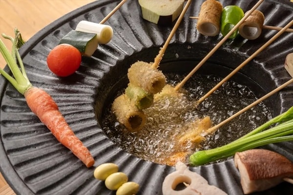 味わえるのは、東彼杵の豊かな土壌で育った季節の野菜。シンプルな「揚げ」という調理法だからこそ、素材本来の甘みと力強い味わいが際立つ。