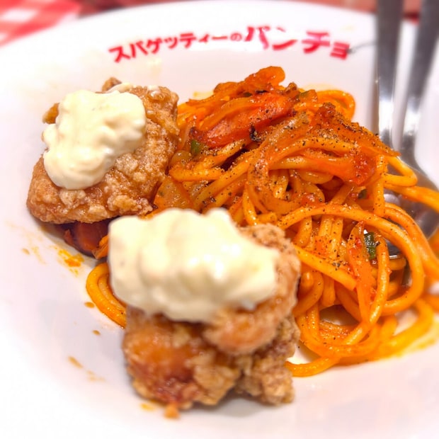 夫も同じく「ナポリタン(ミニ)」にチキン南蛮(420円)をトッピング。