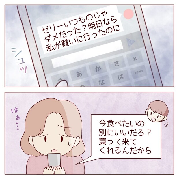 ![息子の言いなり「体調が悪いから仕方ない」夜でも指定のゼリーを求め笑顔で外出。体調が悪いと義母を呼ぶ夫[5]|ママ広場マンガ](https://assets.mama.aacdn.jp/contents/27/2025/9/1759102228806_ct0neq4gh1.jpg?maxwidth=620)