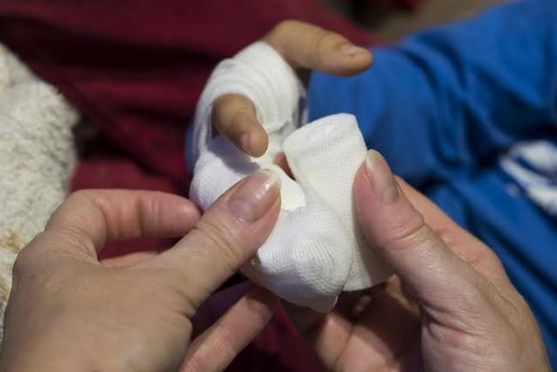 手指挫滅創の治療では速やかな応急処置が必要です。流水で異物を除去し、取りきれなかった異物は外科的に取り除きます。医療機関では残された組織を可能な限り元の形に戻すよう縫合しますが、場合によっては手指の切断も考慮されます。