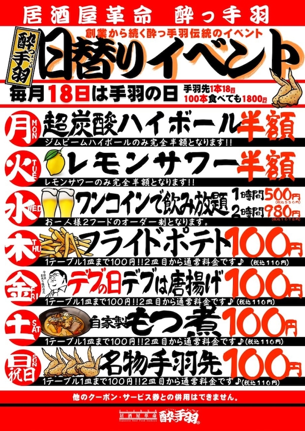 「居酒屋革命 酔っ手羽」日替りイベント