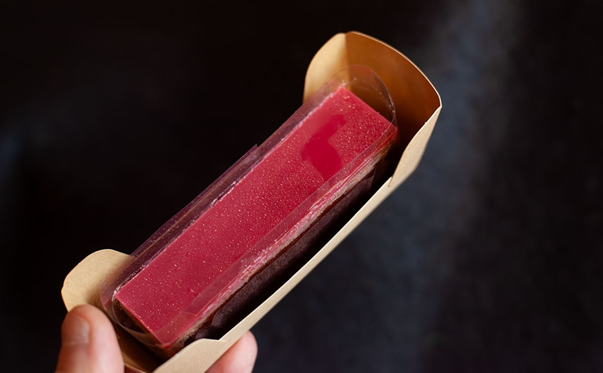 この商品は、コーティングチョコ、チョコムース、ココアスポンジ、フランボワーズムース、フランボワーズジュレ、クランブルの6つが重なったスイーツで、濃厚な味わいが楽しめるのだとか。どことなく高級感があって、有名なパティシエさんとのコラボか何かだと思ったら、そうでもないようです。