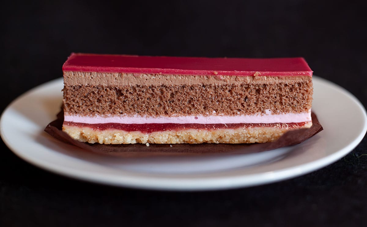 2026年1月20日(火)、ファミリーマートが発売したのが、「6層の濃厚オペラケーキ ~ショコラフランボワーズ~」(税込378円)という新商品です。